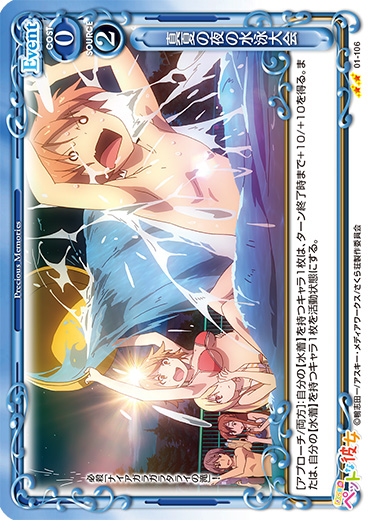 [アプローチ/両方]:自分の【水着】を持つキャラ1枚は、ターン終了時まで+10/+10を得る。または、自分の【水着】を持つキャラ1枚を活動状態にする。